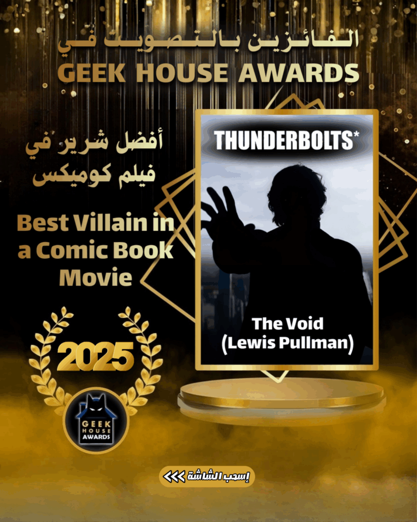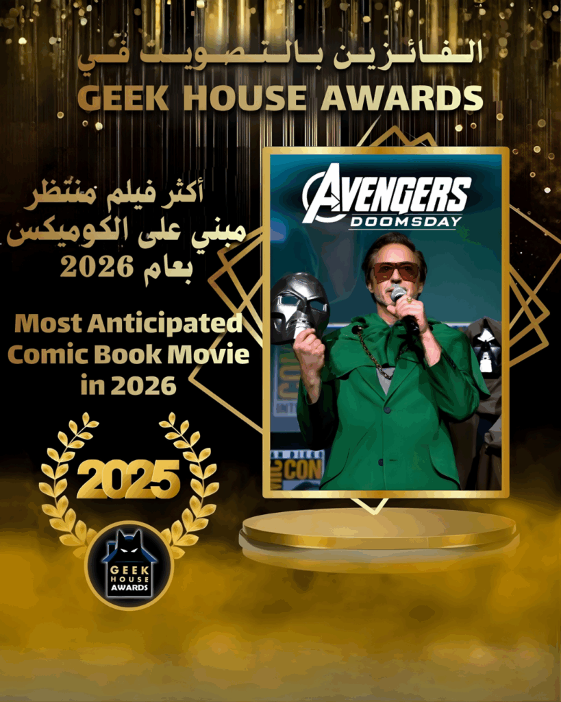 لعام 2025 نجاحًا كبيرًا، حيث قام متابعونا بالإدلاء بما يقارب ٣٥ ألف صوت عبر تسع فئات مختلفة Geek House Awards حققت نسخة وتمثل تمثل هذه الجوائز صوت الجمهور بشكل مباشر وطبيعي، إذ تحتفي بأفضل المشاريع في مجال ثقافة القصص المصوّرة والأبطال الخارقين خلال العام الماضي، سواء من الأفلام والمسلسلات وحتى الألعاب الالكترونية